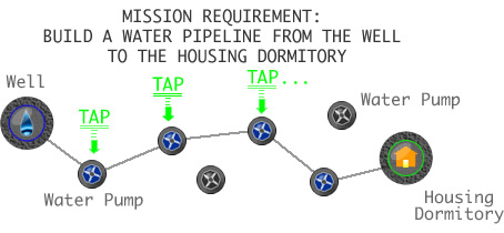What fun is a mission in space without risk, right? Be sure to watch out for bad water pumps -- they are spinning in the wrong direction and will cause a pipeline rupture if you try to connect to one! |